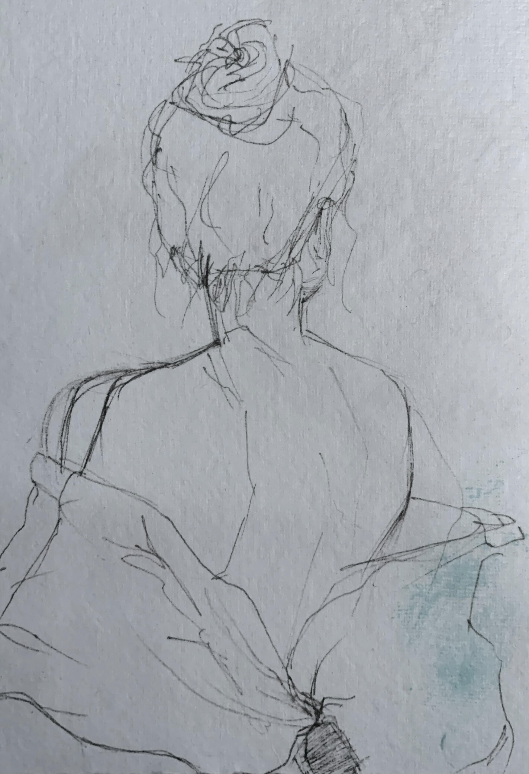 Pilot fineliner on recycled paper, 5"x7", 10 minutes. From photo reference.